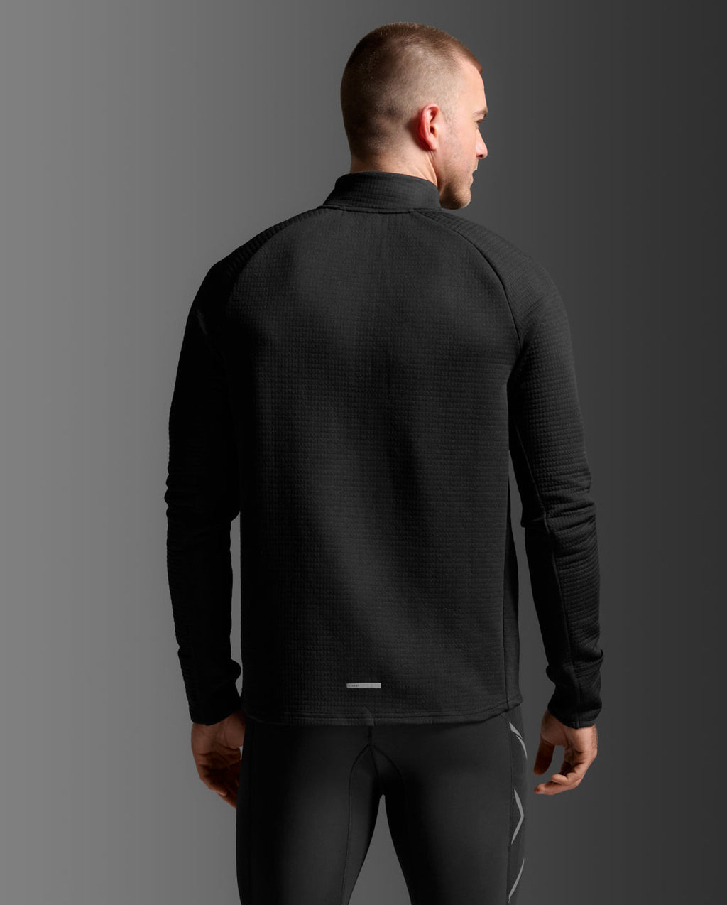 Kolmiulotteinen kangasrakenne muodostaa pieniä ilmataskuja, jotka pitävät kehon lämmön sisällä, ja käsien päälle vedettävät peukaloreiälliset hihansuut pitävät kädet lämpiminä.