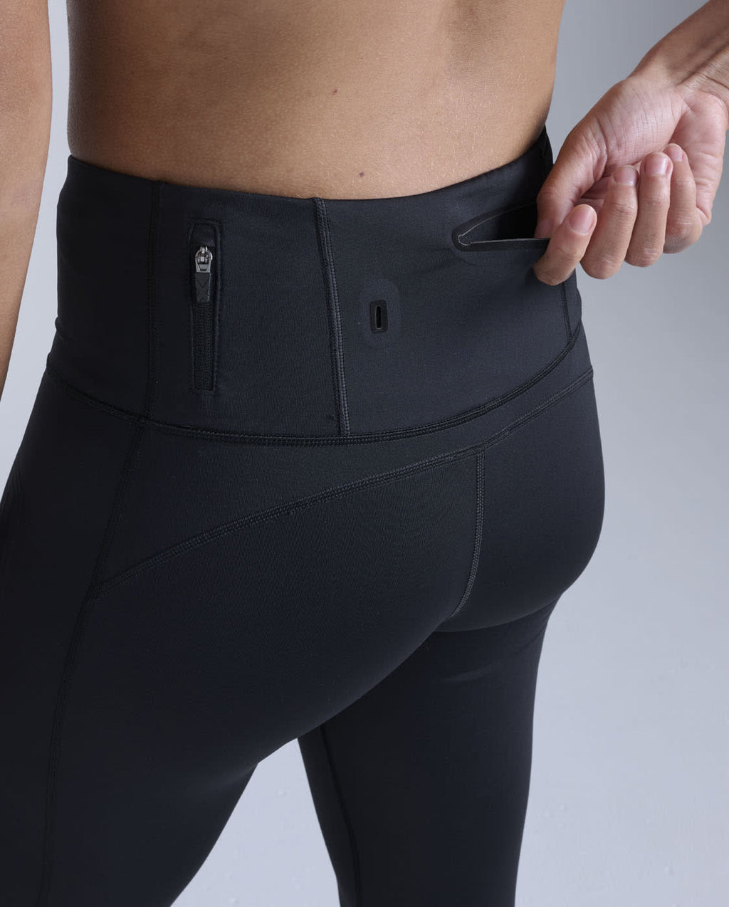 Mid-Rise vyötärönauha kiristysnyörillä antaa hyvän, säädettävän istuvuuden ja kolme takataskua takaavat säilytystilaa puhelimelle, korteille ja avaimille sekä geeleille.